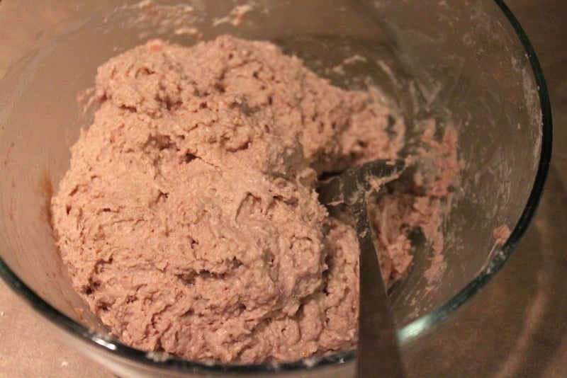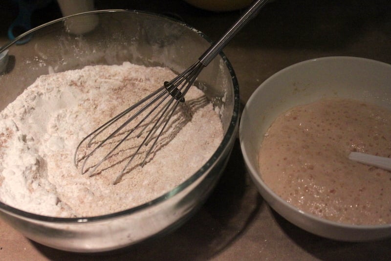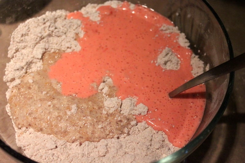 Add yeast mixture and strawberry puree to the dry ingredients.