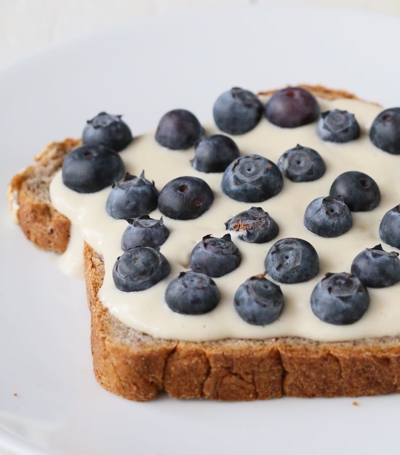 Or make a cream berry toast. Warmed up bread topped with Cashew cream spiked with cinnamon and maple, topped with berries of choice. (Pictured bread is Strawberry multigrain wheat bread, but you get the idea).