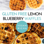 These easy vegan gluten-free Lemon Blueberry Waffles are crispy on the outside, light and fluffy on the inside and perfect for brunch or breakfast! Super simple to make in one bowl.
