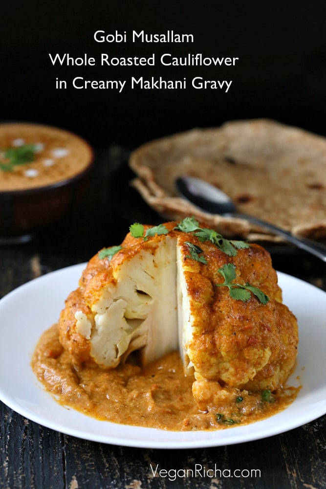 Gobi Musallam - Whole Roasted Cauliflower with Creamy Makhani Sauce. Vegan Glutenfree Recipe
