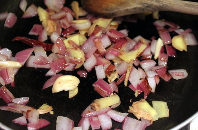 - Add ginger, garlic chili and saute for another 2 minutes.Add the spices and mix.