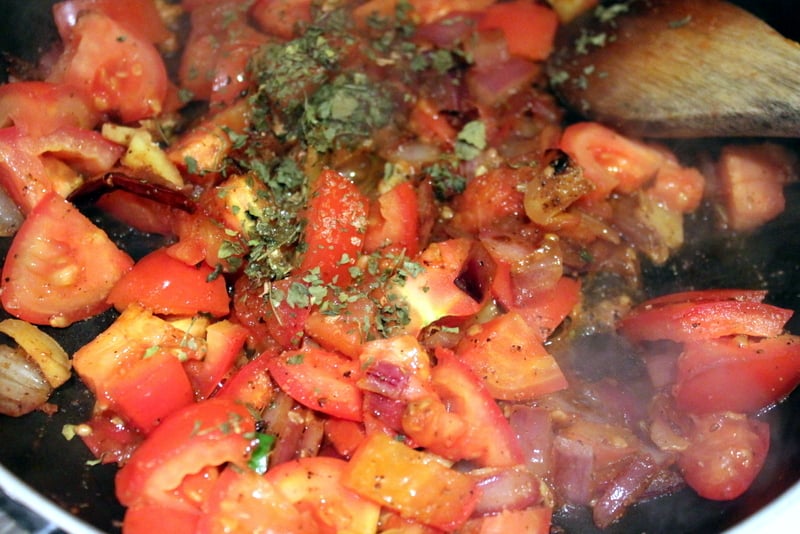 Blend tomato mixture with coconut milk and pour over cauliflower. keep some sauce to serve on the side later.