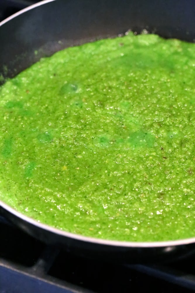 Blend up the cilantro, onion and spices and cook on medium heat.