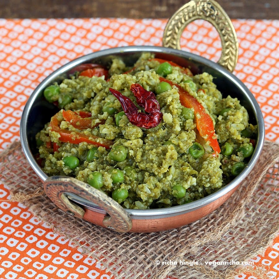 Gobi Mutter Keema - Minced Cauliflower and Peas in Cilantro Onion curry. Vegan Glutenfree Recipe