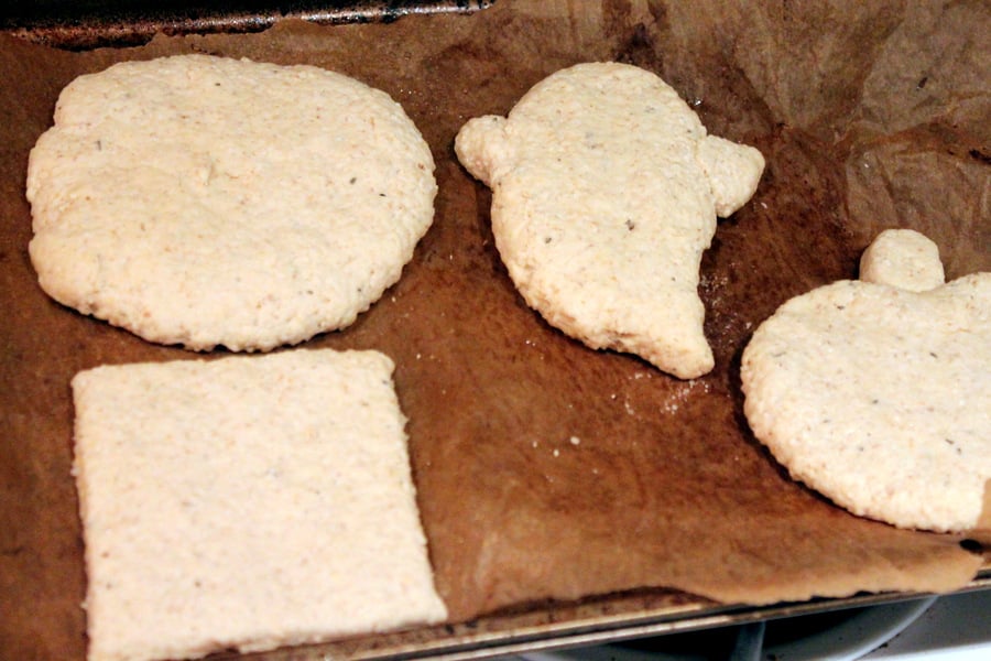 Divide dough and shape into shapes of choice. ghost, pumpkin squares, rectangles