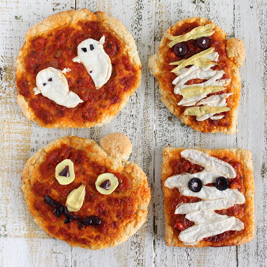 There’s a Mummy, a ghost mummy, a twin ghost pizza and a somewhat grumpy pumpkin. Take your pick.