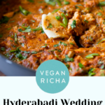 Hyderabadi wedding chicken curry made vegan with tofu is a traditional curry served at weddings. The sauce has a vibrant, red color and rich flavors from nuts and whole and ground spices. This simplified version of the classic recipe cuts back on time without sacrificing an ounce of flavor!
