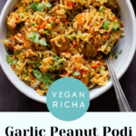 Podi rice made with a dry chili garlic peanut chutney, is a super flavorful Indian fried rice. One-pot gluten-free meal, nutfree option. It’s packed with garlic, dry chilies, and curry leaves and packs a flavor punch!
