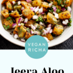 Meet Jeera Aloo aka Indian Cumin Potatoes – a vibrantly spiced vegan Indian side dish that’s easy to make and satisfying to eat. This classic Indian potato side dish recipe is loaded with flavor from whole cumin seeds and fresh herbs and is naturally gluten-free, Soyfree and nutfree