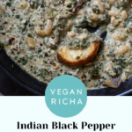 - Now, mix in the non-dairy yogurt, remaining 1/4 teaspoon of salt, spinach, and water or stock or non dairy milk, and bring to a boil. Then, stir in the beans. Taste and adjust the salt and flavor. You can add in more black pepper for more heat at this point and more salt, if needed, or some non dairy cream or cheese for creamier. Then partially cover and simmer for 5 minutes. Switch off the heat, then garnish with the red pepper flakes, black pepper, cilantro, and vegan parmesan and serve.