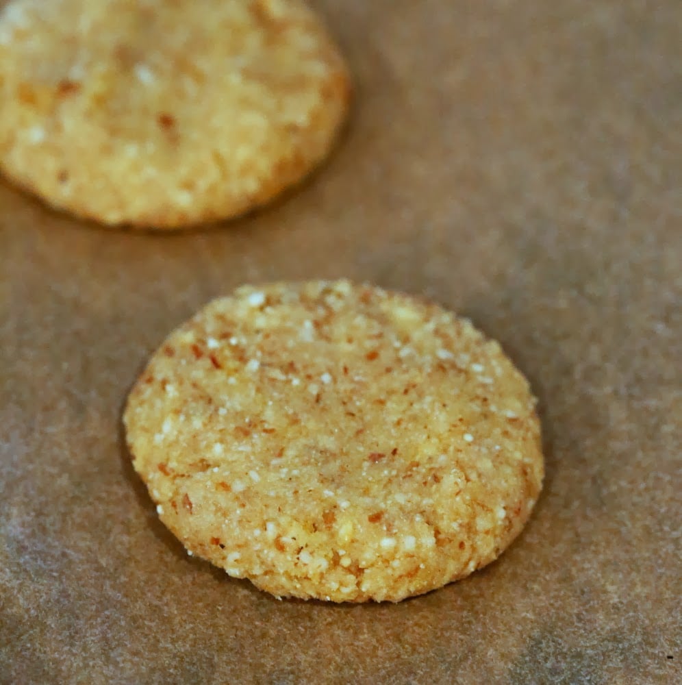 Add almond milk, maple syrup and mix into a soft dough. Shape into discs and bake for 10 minutes.
