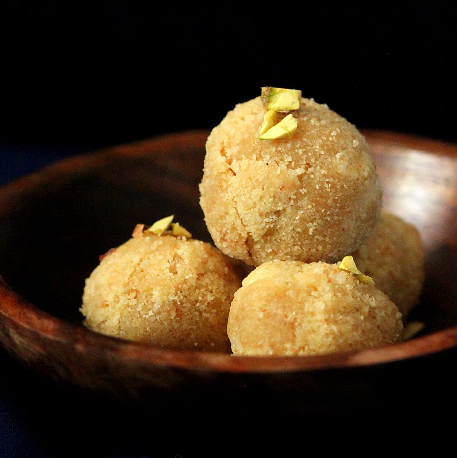 Coconut Rava Laddoo – Sweet balls of coconut flakes and semolina.
