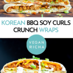 Try this vegan crunchwrap recipe – a veganized and fusion version! Completely homemade with Korean BBQ Soy Curls, vegan cheese shreds and veggies for the filling.