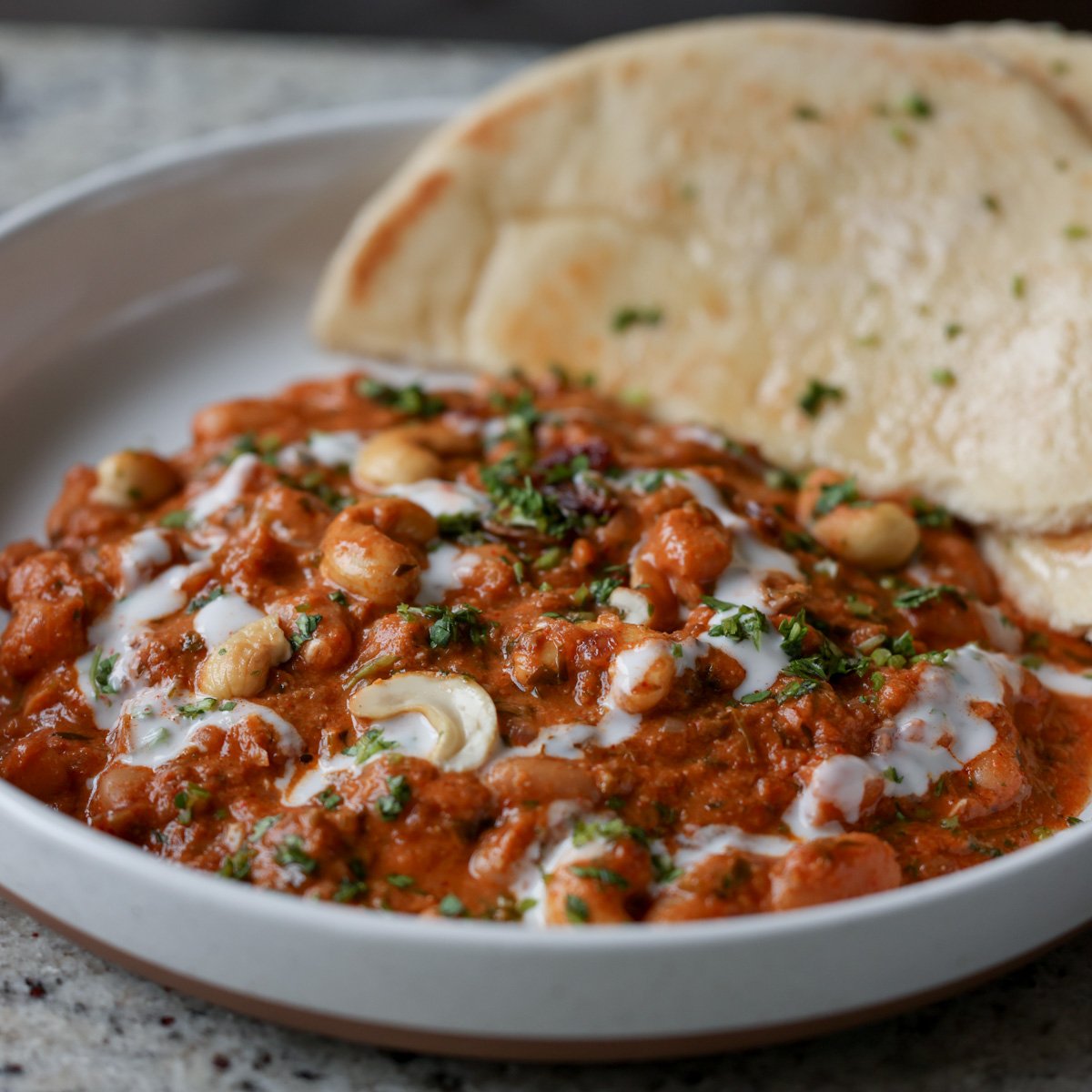 Serve beans korma with naan, flatbread, rice, quinoa, baked potato, garlic bread, or sourdough.
