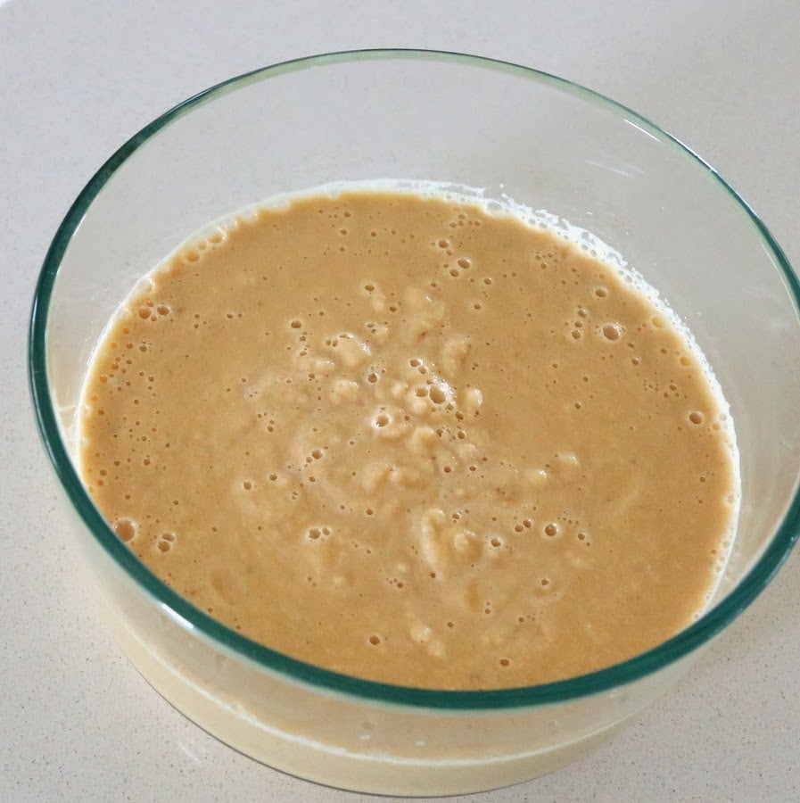 1 tsp nutritional yeast, 1 Tablespoon beer. Taste and adjust. (To make cashew cream, soak 1/2 cup cashews for an hour in warm water, then blend with a little water into a smooth cream) Other Beans: You can use other split peas or split beans as well. If using whole beans or whole brown lentils, soak them longer overnight), blend for a 2-3 cycles to get a smooth batter and use. The color of the batter will depend onthe beans used.