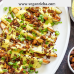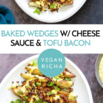 Baked Potato Wedges with Creamy Cheese Sauce and Tofu Bacony Bits