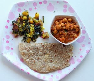 Phukein, Chole/Chana Masala And Roti (Green Onions and Potatoes Garbanzo Bean Curry And Indian Flat Bread). A delicious, healthy and easy weeknight dinner. Vegan and Gluten Free Recipe. Jump to Recipe