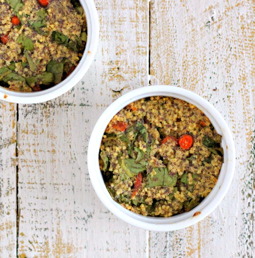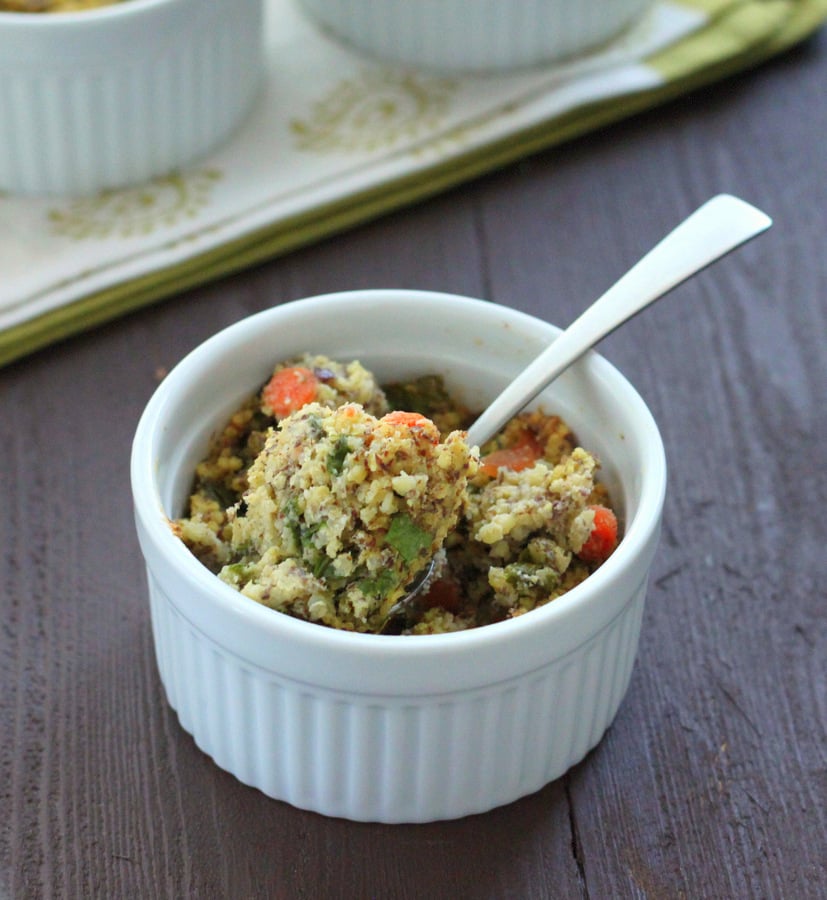 Found this in the drafts :). Savory cheesy breakfast bakes. Cooked millet with greens and chickpea flax coconut milk mixture. These baby somewhat crust-less quiches bake up to soft nutritious breakfast or side. I saw this Spinach millet egg bake at Naturally Ellaย some time back and decided to make vegan version. The pictures were waiting to be edited.. and today is the day.