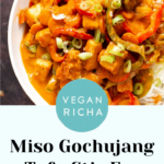 Liven up your dinner routine with this Peanut Butter & Miso Gochujang Tofu Stir-fry. A quick vegan stir-fry with the perfect spicy peanut miso sauce that tastes better than take-out. Nutfree option and Soyfree option included.