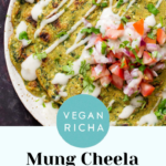Meet Moong Cheela(chilla) – your new favorite savory pancake! Usually moong dal chilla are made by soaking the moong dal(petite yellow lentils/skinned green mung beans), then blending with water to make a batter. But you can also use moong flour to make them!