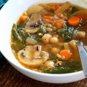 Mushroom Chickpea Soup with Veggies and Greens