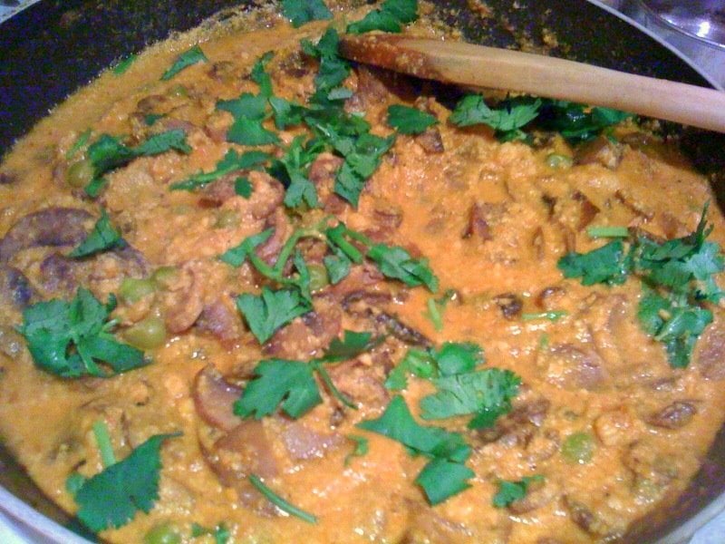 Mushroom Mutter Masala, or, mushroom and peas in a creamy curry, is an easy and tasty meal.
