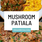 This Mushroom Patiala is a vegan version of restaurant-style chicken Patiala, a Punjabi dish with a rich and luscious creamy gravy that is seasoned with ginger, garlic and garam masala. Restaurants esp dhabas(highway street restaurants) serve patiala with a side of omelet. You can serve it with a vegan one or serve with Naan or rice.