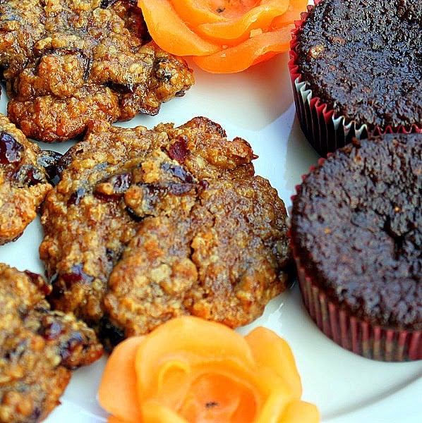 - Add in more oats and flour if needed to get gooey muffin mixture kind of consistency, Or a very sticky dough. If you added too much flour or oatmeal and the mixture looks like a stiff dry dough, then add in a little oil and or lemon juice to make it gooey. (If the dough is stiff and not sticky, the cookies might come out too hard). Fold in cranberries