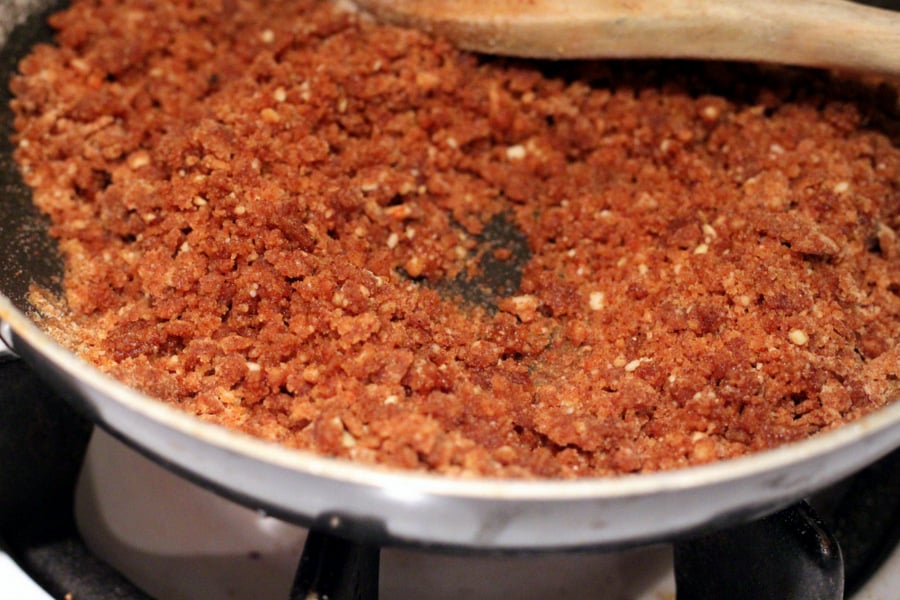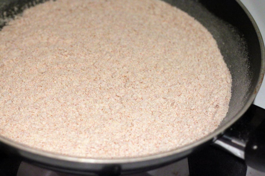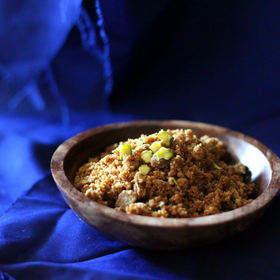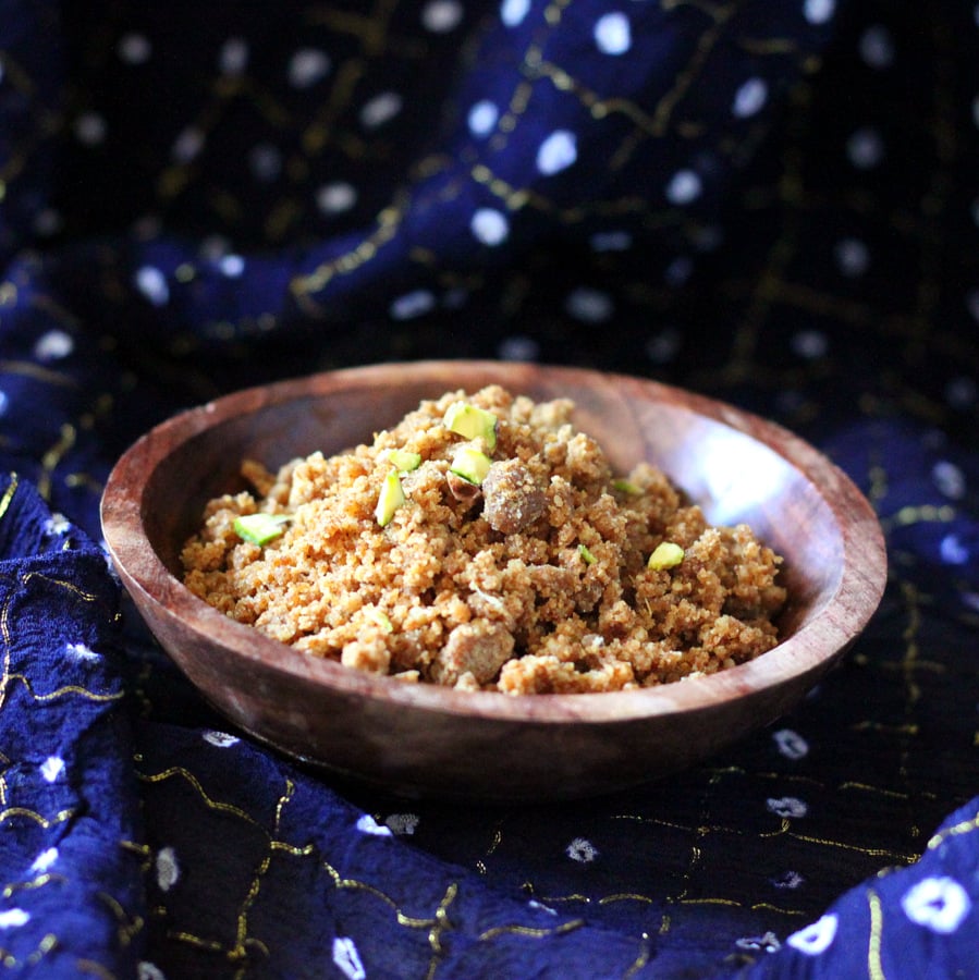Crumbly, delicious choorma. Add roasted or raw chopped nuts and raisins to this and serve.