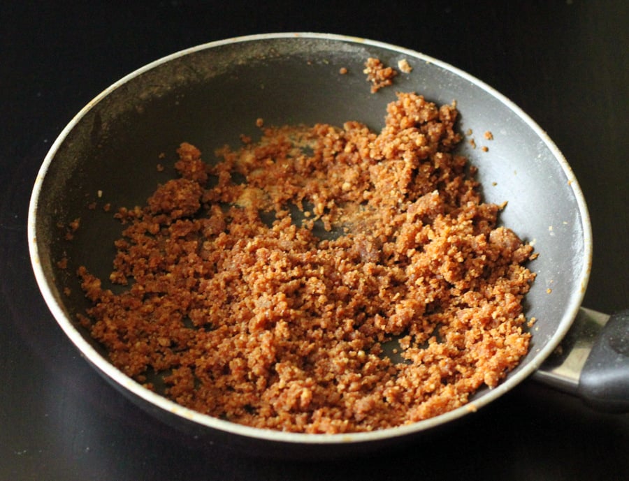 You can serve this lumpy mix, similar to the wheat choorma as is, or make balls/laddoos out it.