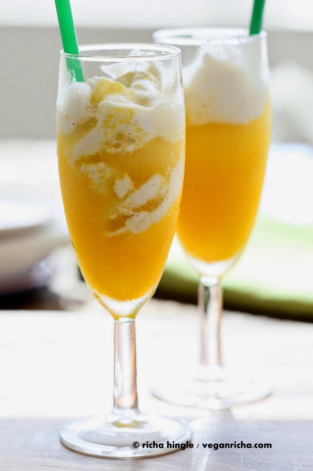 Add Vanilla Bean Ice cream scoops to glasses that have been chilled for half an hour. I used So Delicious No sugar Added coconut milk Vanilla Ice cream.