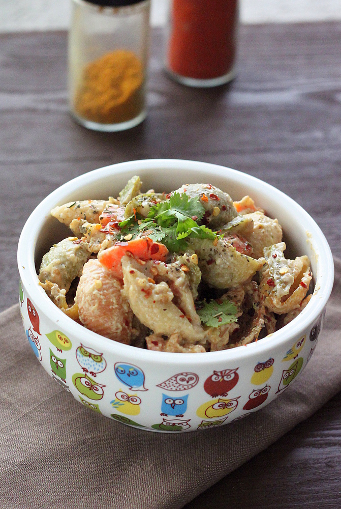 I made a couple of combinations of sauces with different nuts, spices, herbs. Here are a few for you to try out. Ranch, Spicy Sriracha, Mac and cheese, Chipotle and more.ย