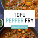 Explore regional Indian cuisine with me and do try this pepper fry! It is incredibly delicious, and of course a bit hot with all of that black pepper. You can pair the sauce with chickpeas or beans, or roasted veggies or vegan chicken for variation and to make tofu-free.