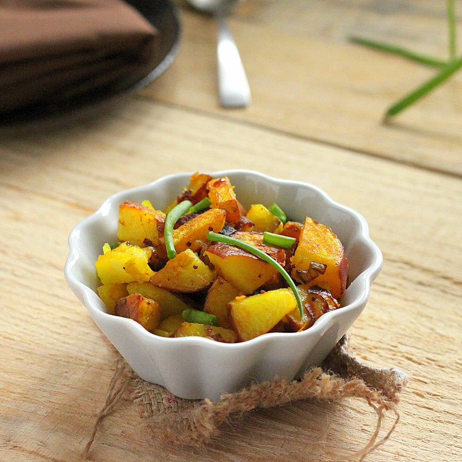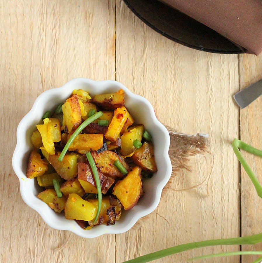 Potato Leek Subzi with fennel and mustard seeds. Potato leek stir fry with Indian spice. Easy side. Vegan glutenfree soyfree recipe