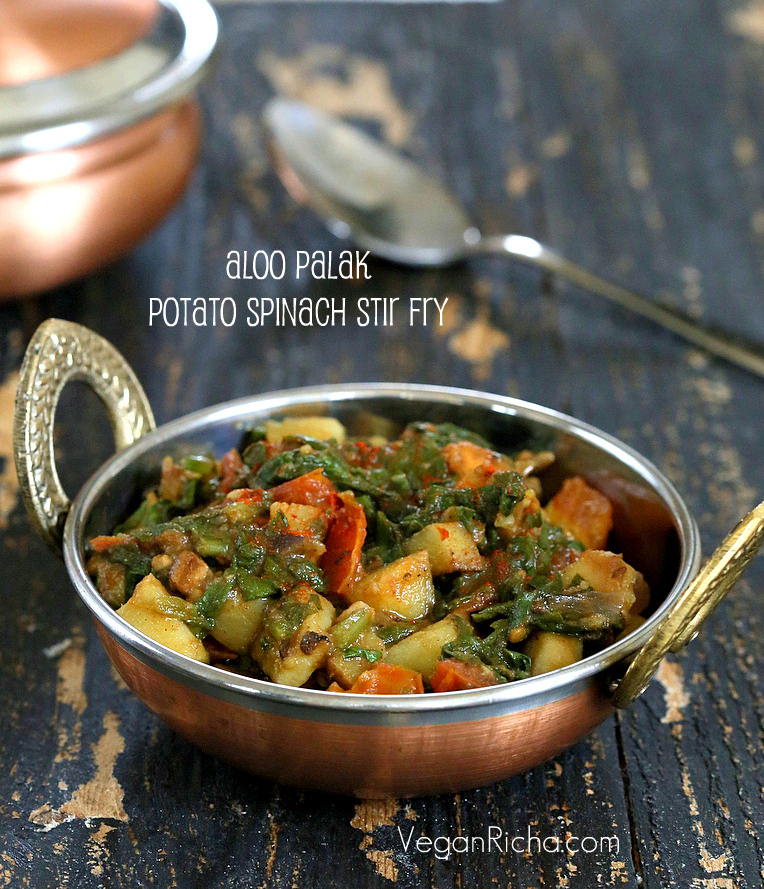 Potato Spinach or Rainbow Chard stir fry. Aloo Palak. Vegan Potato Spinach Stir Fry