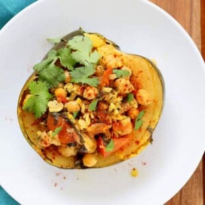 Pressure Cooker Curried Chickpea stuffed Acorn Squash