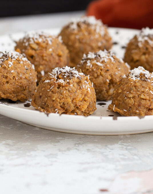 Made these and they were a perfect fall snack! Rolled them in some cinnamon coconut sugar.