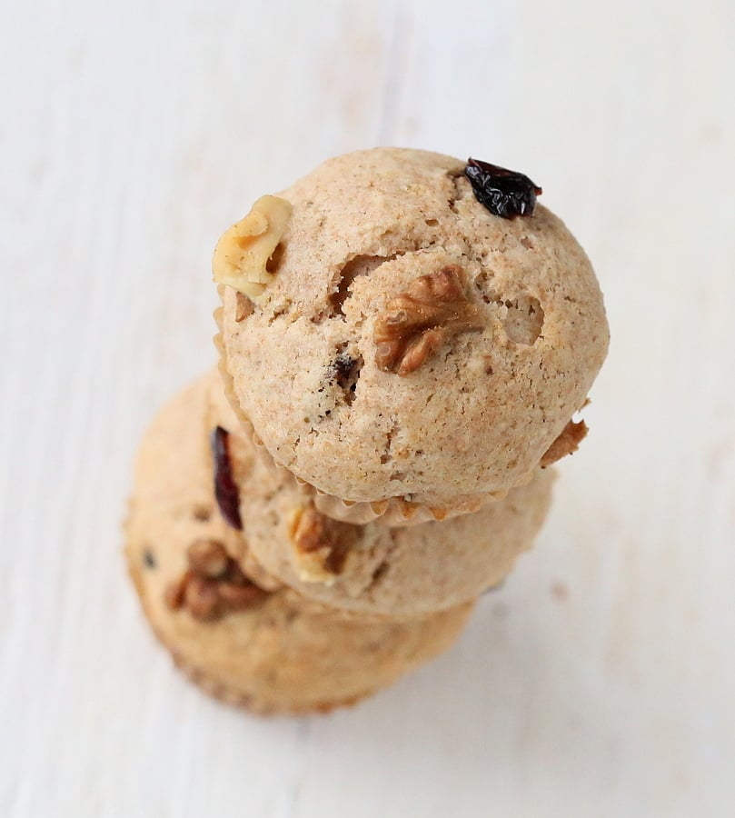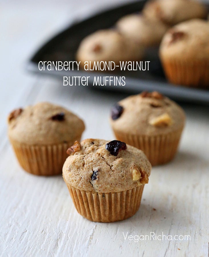 In my small kitchen, some times the things move round during re-organization and can never be found. Such was the case when I decided to make muffins. I couldn’t find my regular muffin pan, so I made these mini ones instead. And I tell ya, these mini muffins are much funner than the large ones. Hubbs isnt a fan of too much sweet, but he loved these minis. I used Spelt flour instead of all purpose and almond-walnut butter instead of pecan butter and made a smaller batch and they came out delicious. These made a perfect breakfast!
