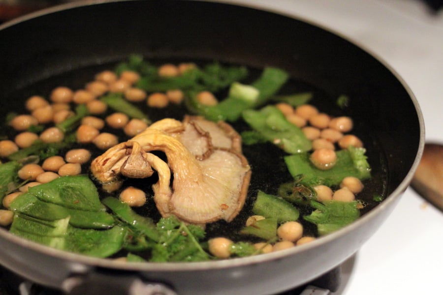 Add chickpeas, herbs and mix for a few seconds. You can add some greens at this point and mix in.