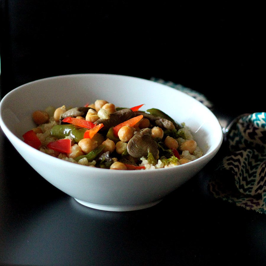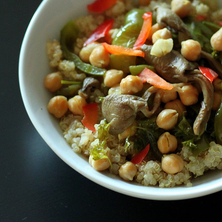 Quinoa Protein bowl with Chickpeas, veggies, mushrooms