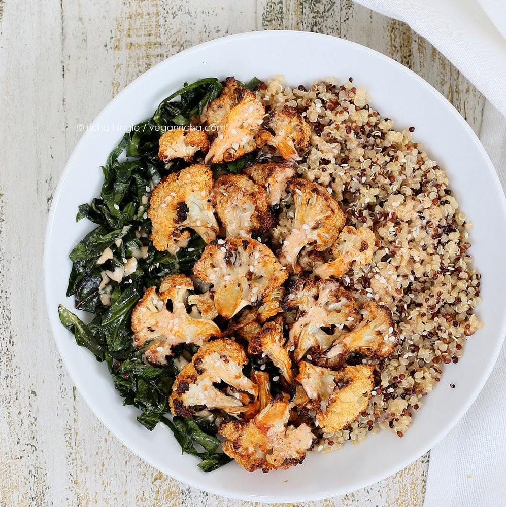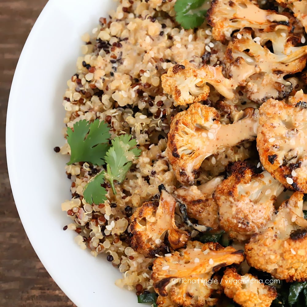 Quinoa Cauliflower Bowl with Almond Sriracha Sauce