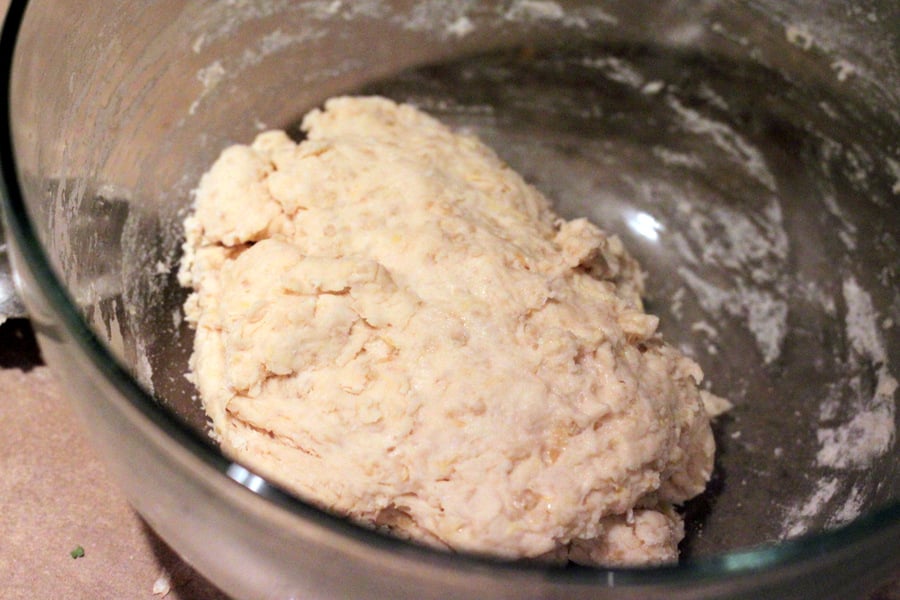 Add the flour, salt, oil, cooked quinoa and mix/knead into a soft sticky dough.