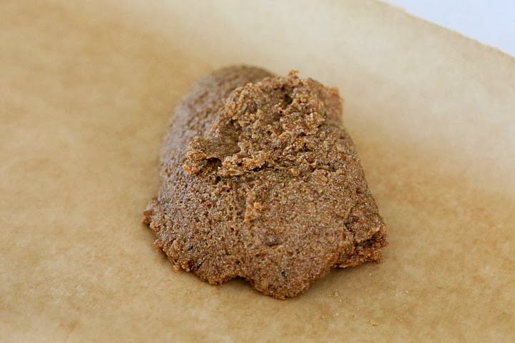 Add maple syrup slowly and mix into a uniform dough. Add oil, mix and Remove from heat. If using vanilla extract, omit the cardamom and add vanilla extract now and mix. Transferย to parchment.ย