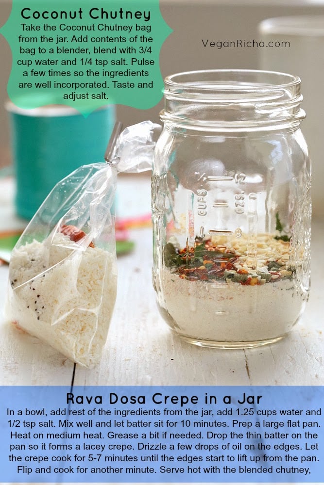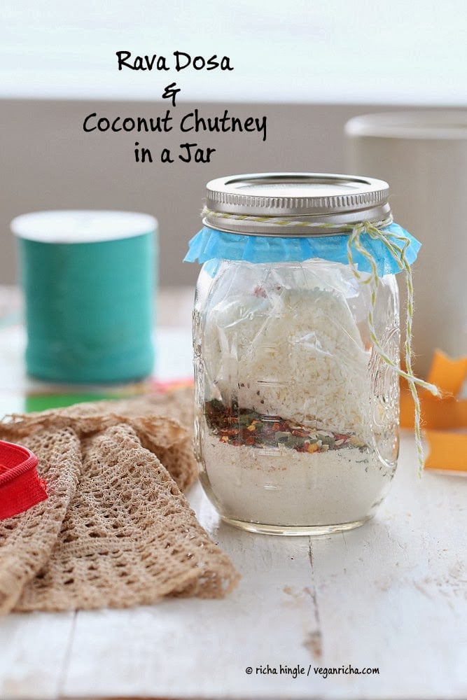 Happy Monday everyone. Another goodie to add to the holiday gift set today. Yes, you can put a Dosa and a Chutney in a jar too. How cool is that! Brownie in a Jar is classic favorite but a savory Dosa in a Jar is fantastic!
