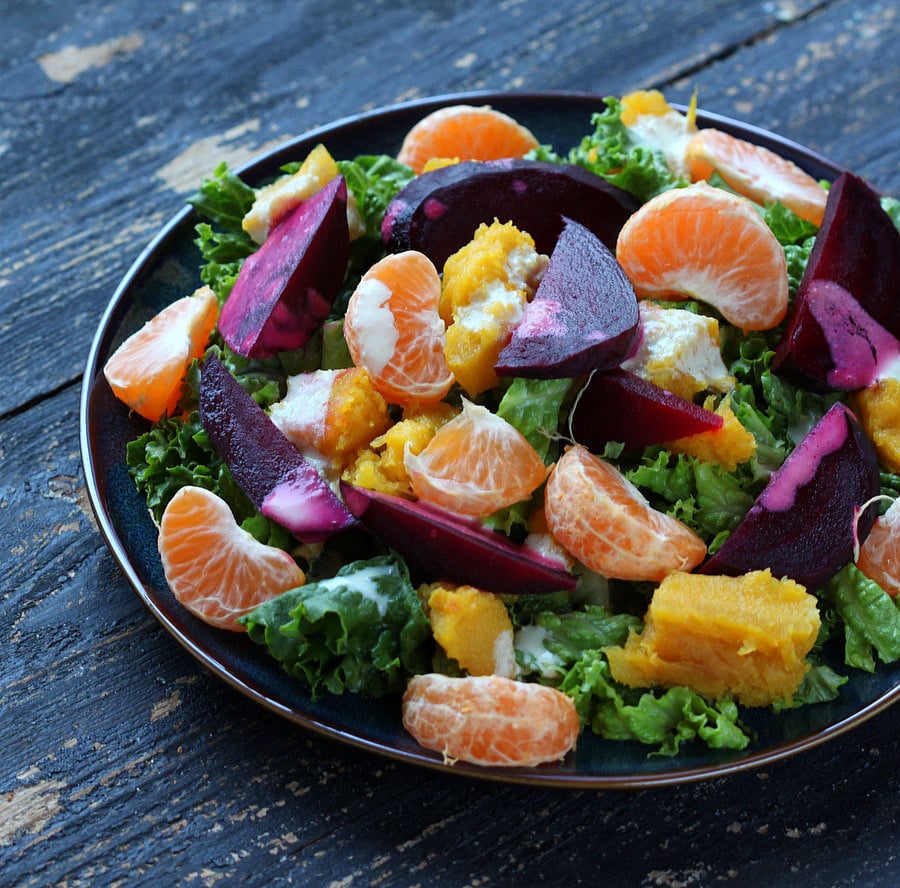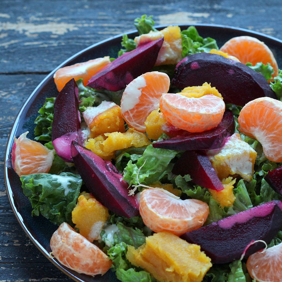 Roasted Acorn, Roasted Beet, Satsuma Salad with Almond Sesame dressing
