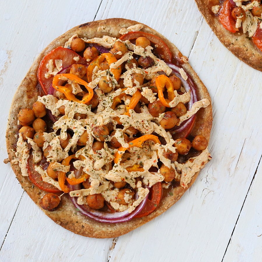 But you can make these BBQ chickpea Tortilla Pizzas into tacos!