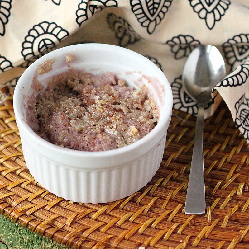 Single serve desserts are the best, especially for portion control, and I love the ingredients. This is kind of like baked oatmeal for one.