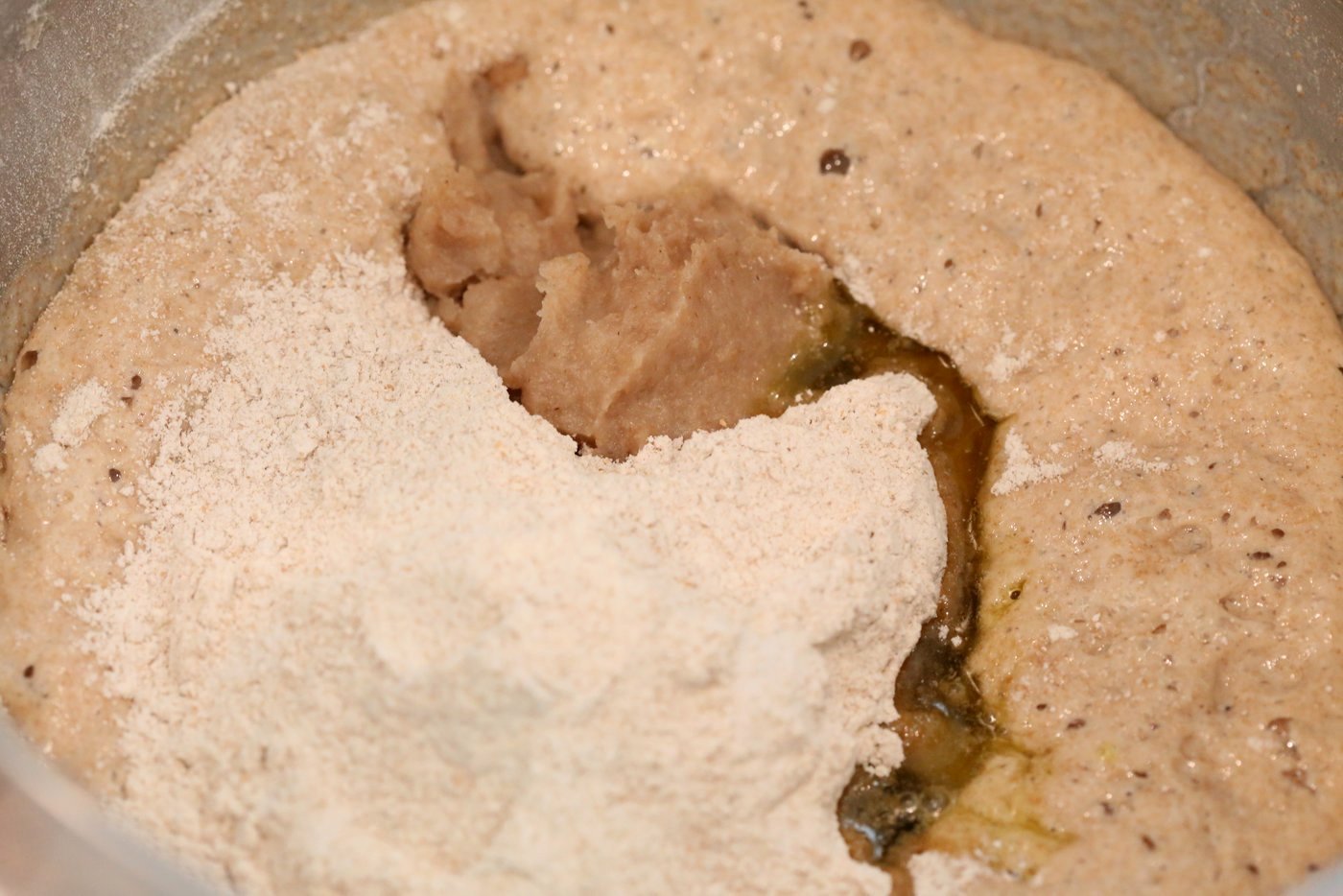 I generally use some whole grain spelt with the wheat or a combination of regular whole wheat which is red wheat flour, and white whole wheat which is flour of winter white wheat. Combination flours help with the flavor and texture. It looks like a long process, but its mostly rest and rise time and bake time with just 15- 20 mins active.