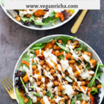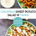 Delicious spices on the sweet potatoes and chickpeas. Love this dressing, too. Thanks Richa for another wonderful and filling lunch.