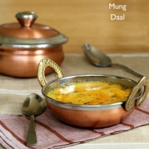 This is my ‘go to’ recipe for Dal. I always make Dal when I am making an Indian dinner, and this recipe is so flavorful, and so easy! Sometimes I use 1/2 cup of moong dal, and replace the other 1/2 cup with split red lentils.